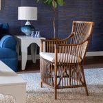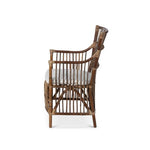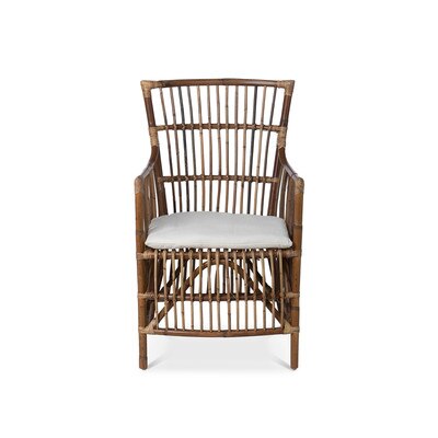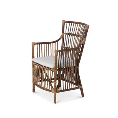 Intentionally worn and weathered, this traveler's chair features sturdy rattan construction and a cotton twill cushion.